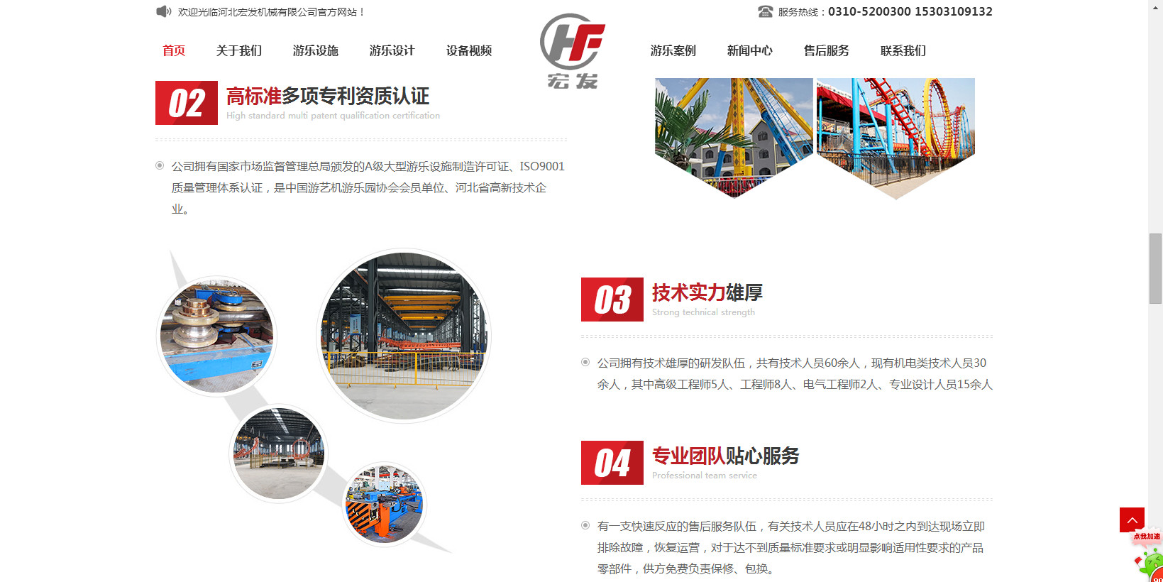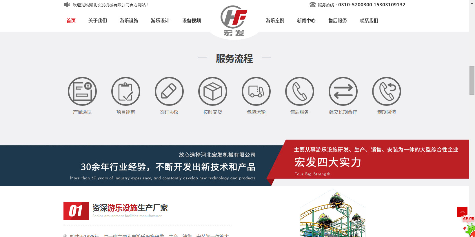 公司生產(chǎn)的“宏發(fā)”牌系列過(guò)山車(chē),觀覽車(chē)(摩天輪),空中飛翔及深受游客喜歡的豪華轉(zhuǎn)馬、章魚(yú)、阿拉伯飛系列的中型游樂(lè)設(shè)備,為擴(kuò)大游樂(lè)設(shè)備的開(kāi)發(fā)與生產(chǎn)于2014年初與北京長(zhǎng)城聯(lián)名思力科技有限公司強(qiáng)強(qiáng)聯(lián)合,形成集研制、設(shè)計(jì)、開(kāi)發(fā)生產(chǎn)的戰(zhàn)略伙伴。